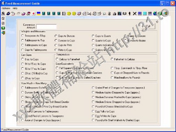 program. A conversion table quickly shows common cooking