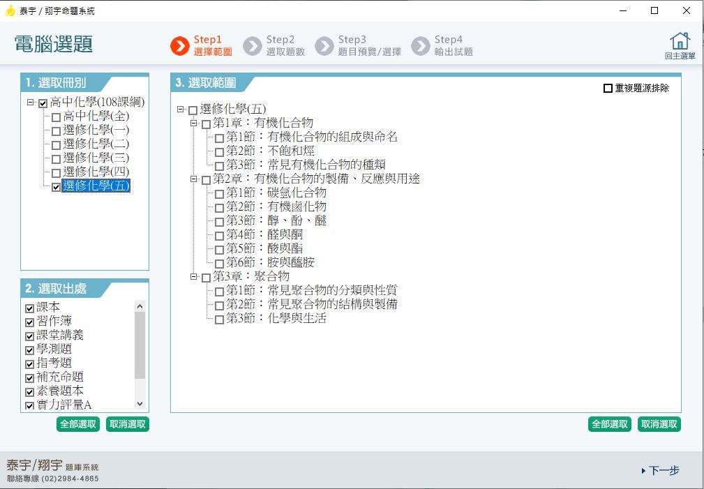 111學年下學期 高中命題光碟 泰宇版 化學科(全、選修一、選修二、選修三、選修四、選修五)(108課綱)題庫光碟