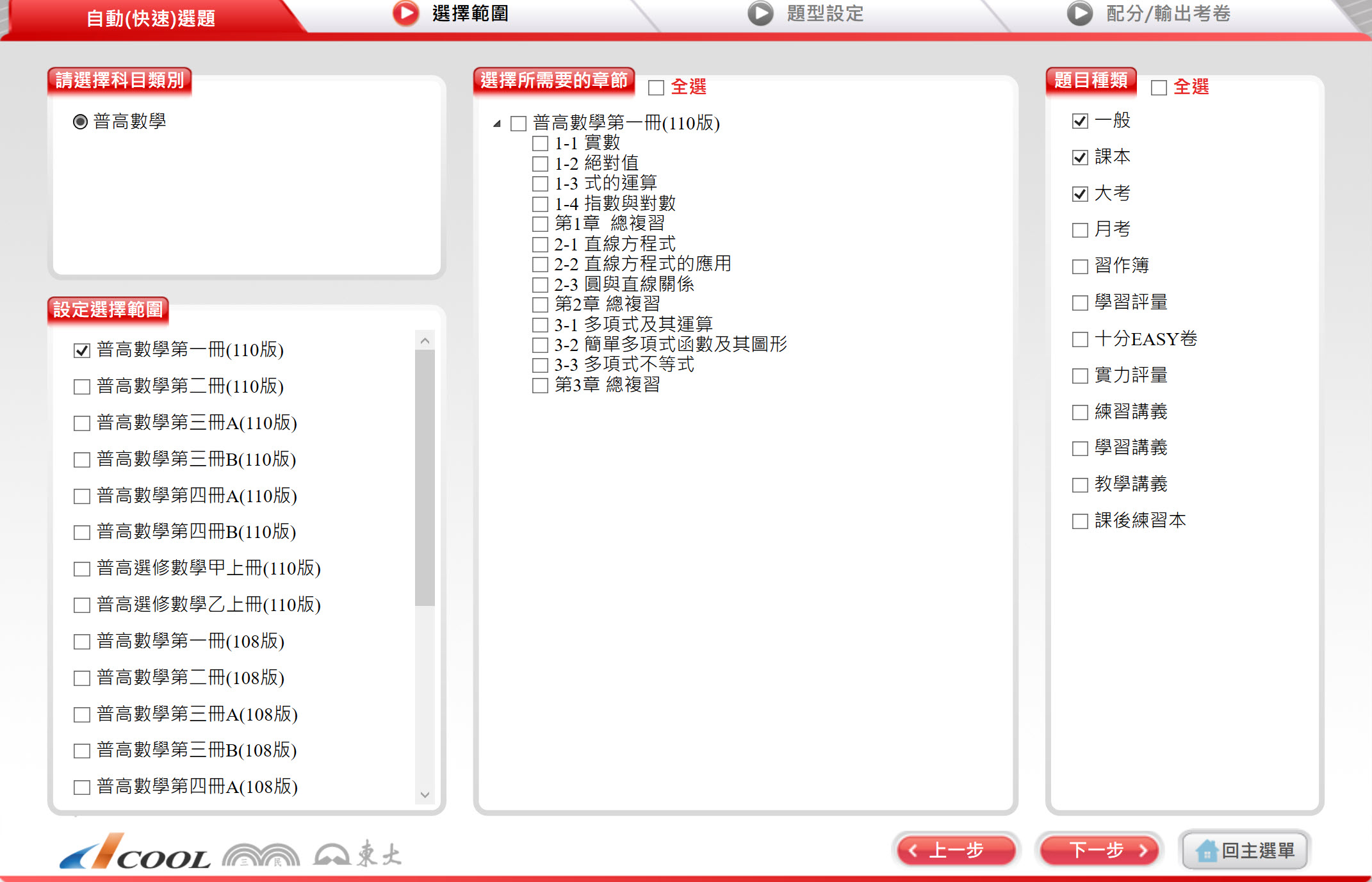 DAE0290--112學年下學期 技術高中命題光碟 三民東大版 數學科(B版、C版 1-4冊)(108課綱) 題庫光碟