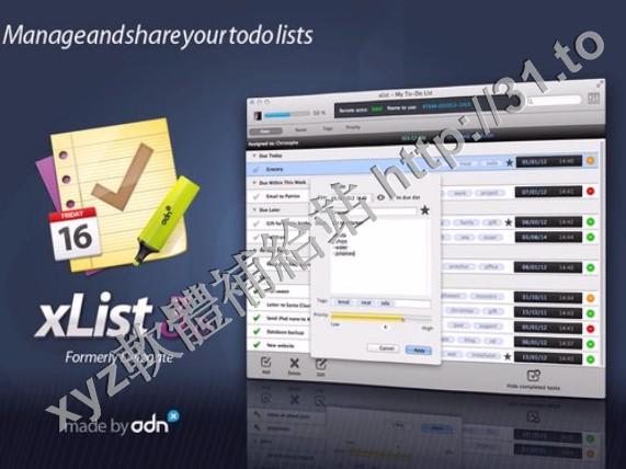 • AdnX xList v3.0.4 MACOSX 英文正式版(to-do列表管理器軟體)