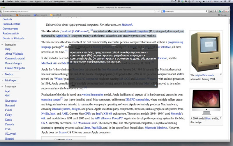 Online translator (Services: Google, Microfoft, Yandex, Babylon).