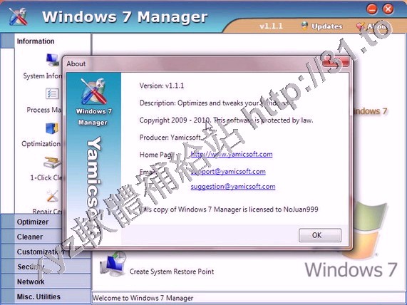• Yamicsoft Windows 7 Manager v2.1.9 英文正式版(Widnows7 總管是優化和設置軟體)