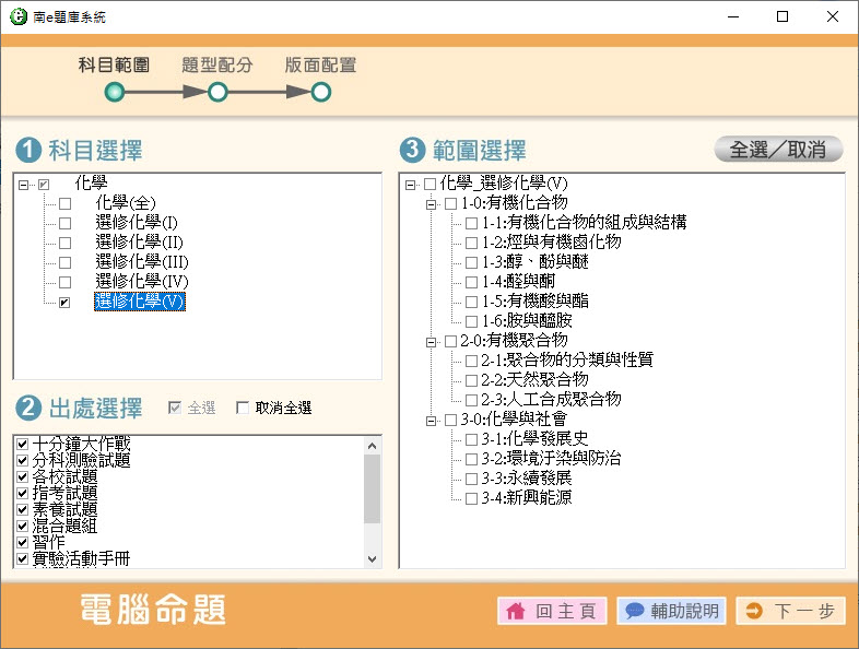 112學年上學期 高中命題光碟 南一版 化學科(全、選修I、選修II、選修III、選修IV、選修V)(108課綱) 題庫光碟