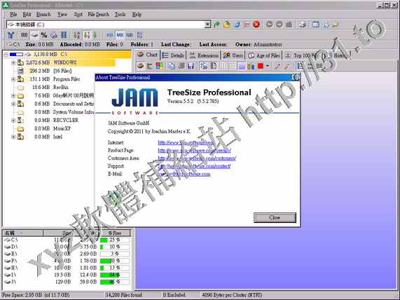 JAM Software TreeSize Professional v5.5.2.785 retail 英文正式版(硬碟空間回收軟體)