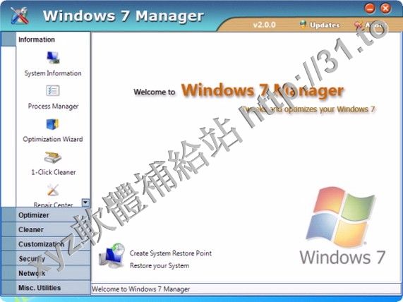 • Yamicsoft Windows 7 Manager v2.0.8 英文正式版(Widnows 7 總管是優化和設置軟體)